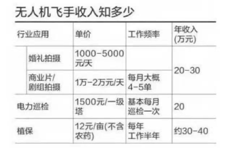 中國AOPA執(zhí)行秘書長柯玉寶曾表示,技術(shù)好的無人機駕駛員月薪甚至能達到2萬元以上,如果承擔復雜的飛行任務,還會有額外的項目分成。 再以航拍飛控手為例,日薪就在1000-1500左右。